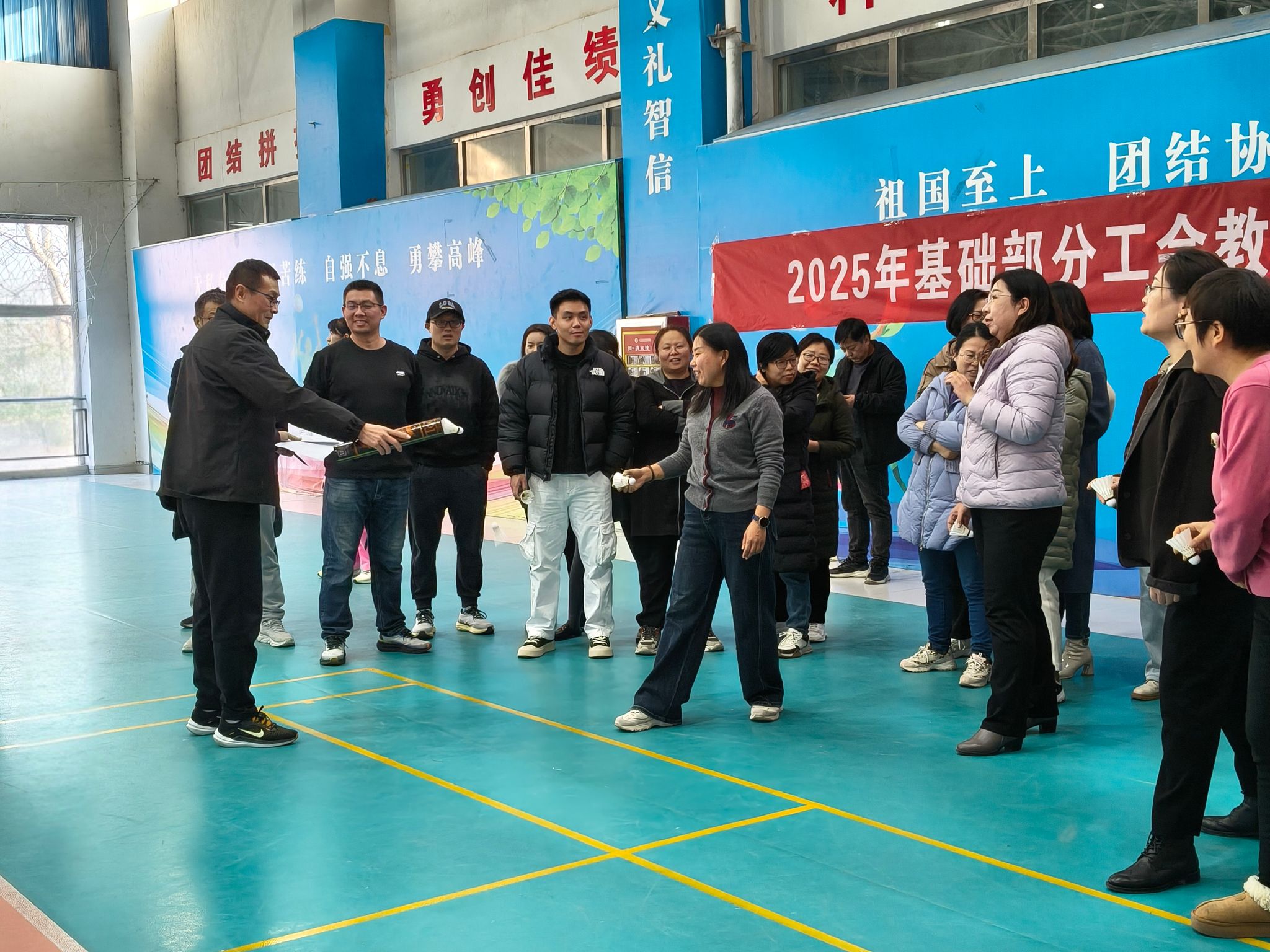 12月10日下午,基础部分工会在学校气排球馆成功举办了分工会教职工素质拓展系列活动。活动设置了跳绳比赛、羽毛球掷远和气排球发球三个趣味项目,旨在通过丰富多彩的体育形式,激发教职工锻炼热情,增强身体素质,进一步营造健康向上、团结协作的工作氛围。