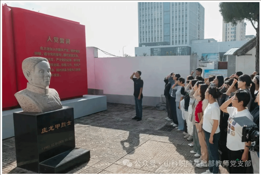 为缅怀革命先烈,传承红色基因,2025年7月,山东科技职业学院基础部教师党支部组织全体党员前往山东省党史教育基地——庄龙甲故居,开展主题党建活动。